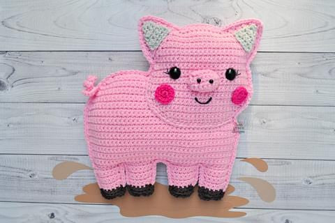 Our finished Pig Kawaii Cuddler® is 11" x 11.5". Hook size, yarn choice, and crochet tension will affect each individual result.