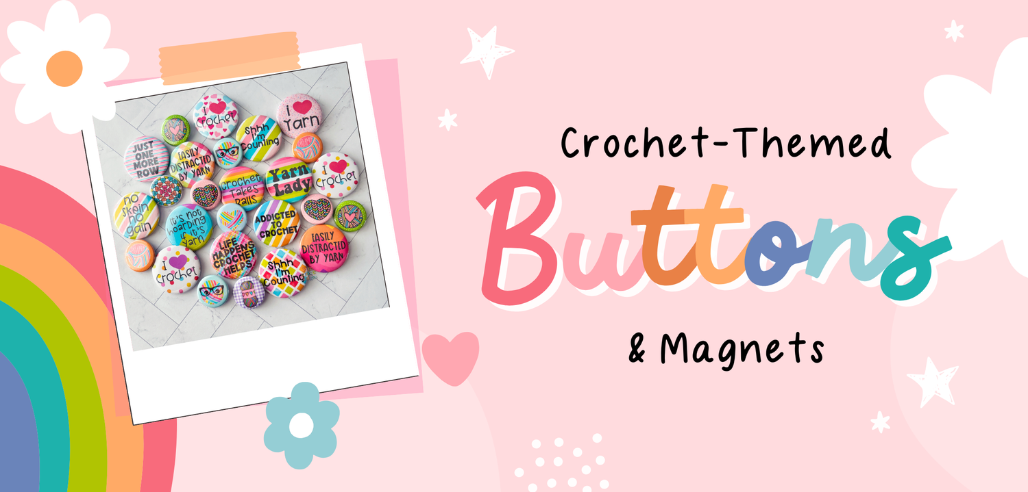 Mystery Crochet Button Pack - Set of 3 Surprise Crochet-Themed Buttons - Choose Size and Backing