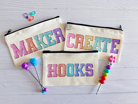 Introducing our charming Canvas Zipper Pouches - a perfect blend of style and functionality! Embrace your passion for crochet while staying organized with these adorable pouches. Choose from a colorful front "Hooks", "Maker", or "Create" graphic.