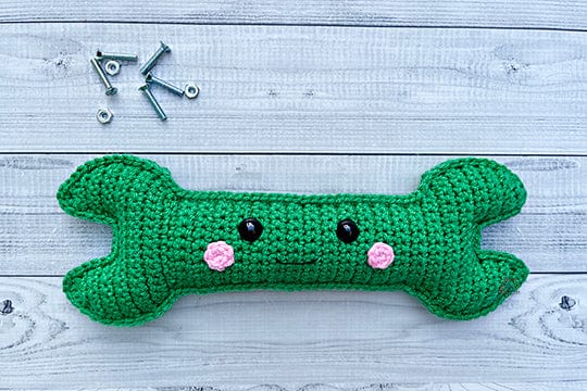 Our finished Wrench Kawaii Cuddler® is 12″ x 3". Hook size, yarn choice, and crochet tension will affect each individual result.