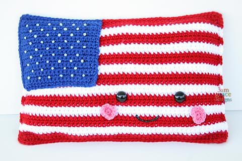 Our finished American Flag Kawaii Cuddler® is 8.5″ x 13". Hook size, yarn choice, and crochet tension will affect each individual result.