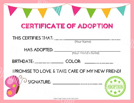 Our adorable adoption certificate is a great way to add that special touch to your little one's gift!