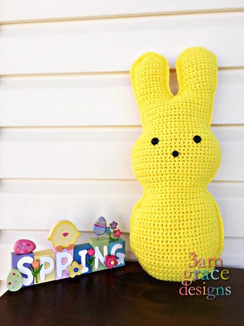 Our finished Easter Marshmallow Bunny Kawaii Cuddler® is 18". Hook size, yarn choice, and crochet tension will affect each individual result.