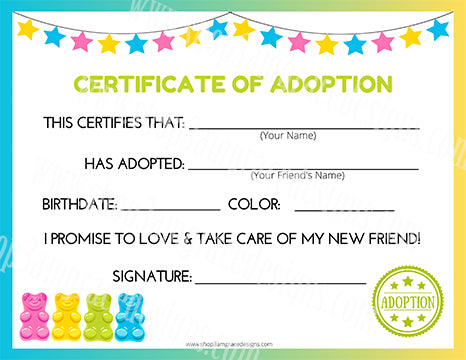 Gummy Bear Kawaii Cuddler® Adoption Certificate