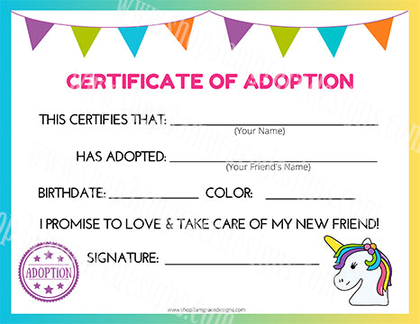 Unicorn Kawaii Cuddler® Adoption Certificate